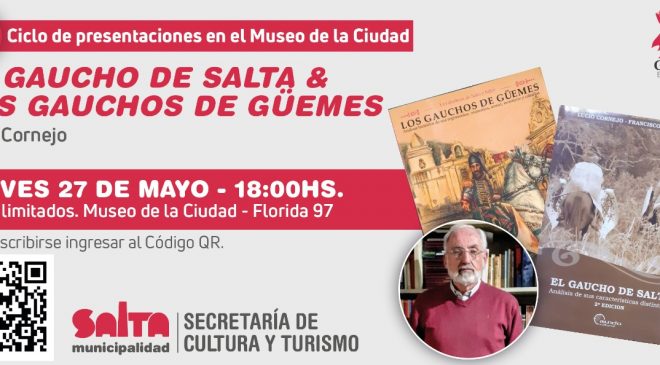 El jueves 27 de mayo, a las 18, a través del canal de youtube de la Secretaría de Cultura y en forma presencial, en el Museo de la Ciudad “Casa de Hernández” se realizará el séptimo encuentro que tendrá la particularidad de presentar dos obras del historiador Lucio Cornejo “Los Gauchos de Güemes” y “El Gaucho de Salta” .