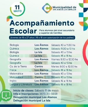 Cerrillos: ACOMPAÑAMIENTO ESCOLAR PARA ALUMNOS DE NIVEL SECUNDARIO Y SUPERIOR